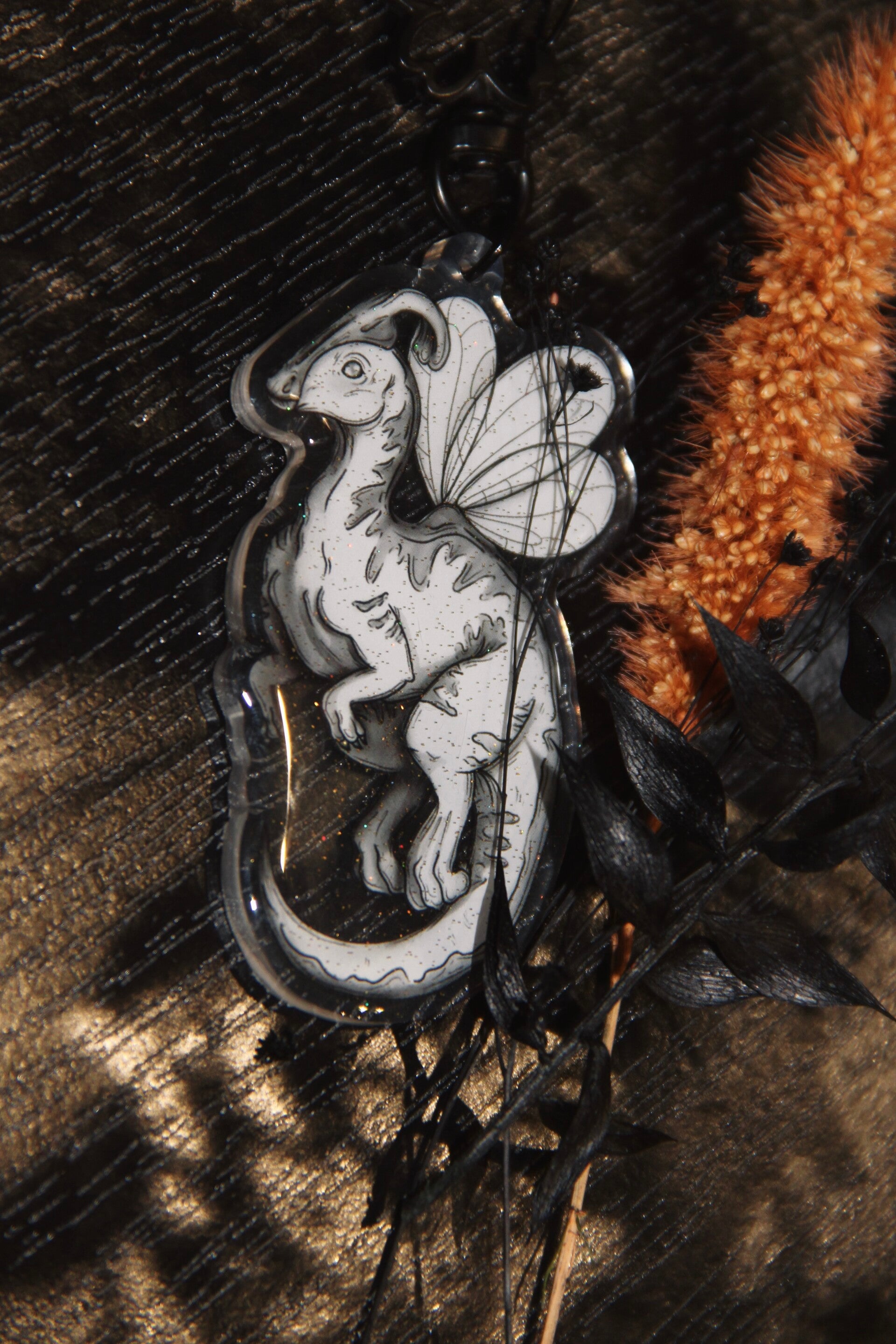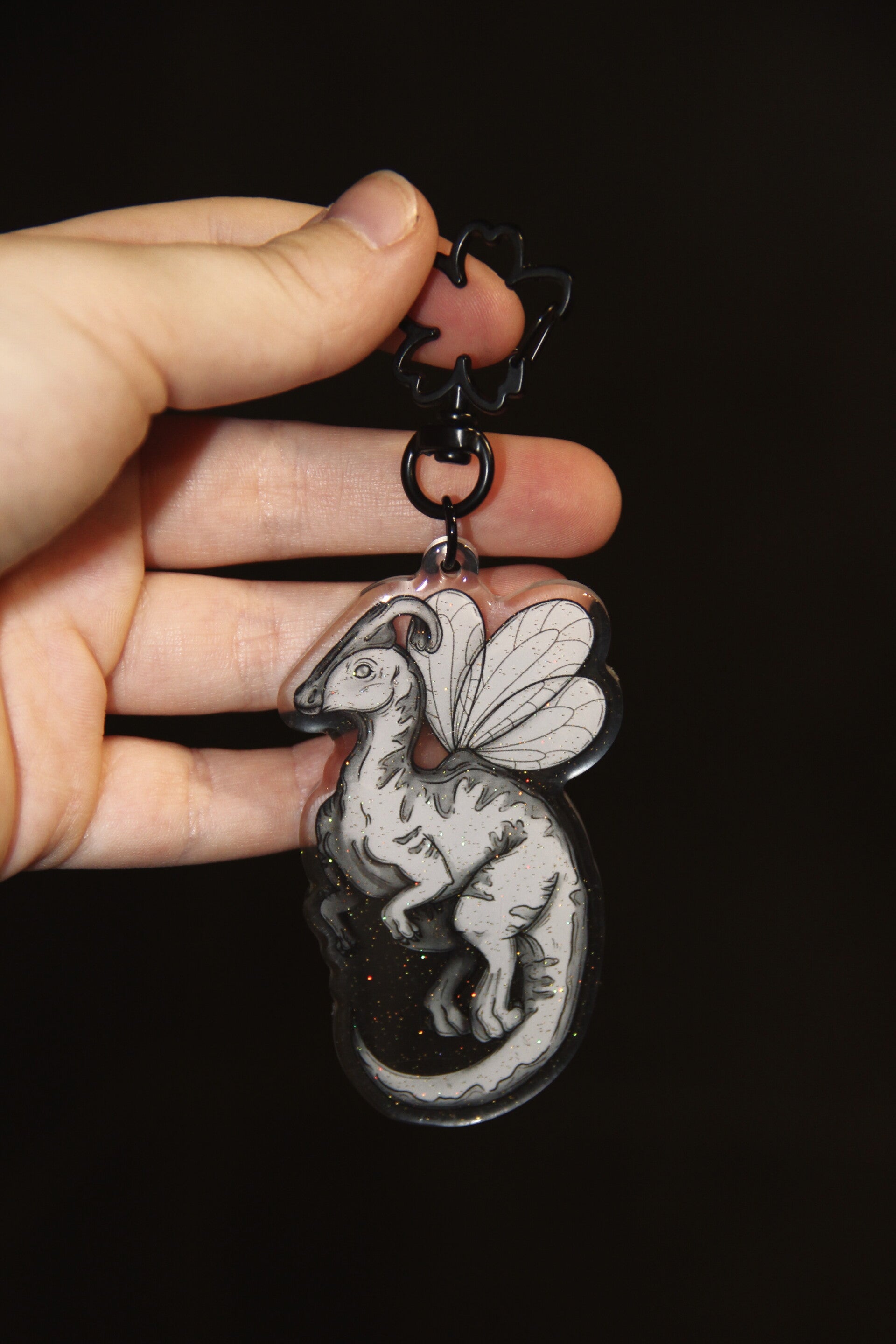 Acrylic dinosaur fairy keychain (Parasaurolophus with wings)
