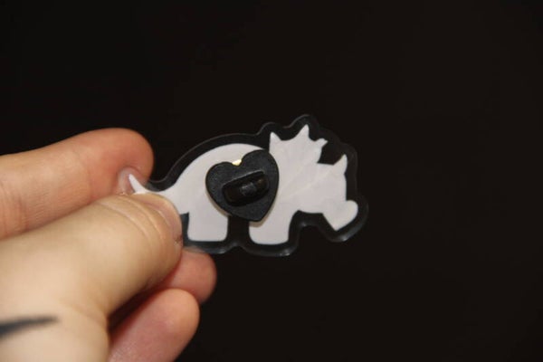 Acrylic triceratops pin with heart clutch