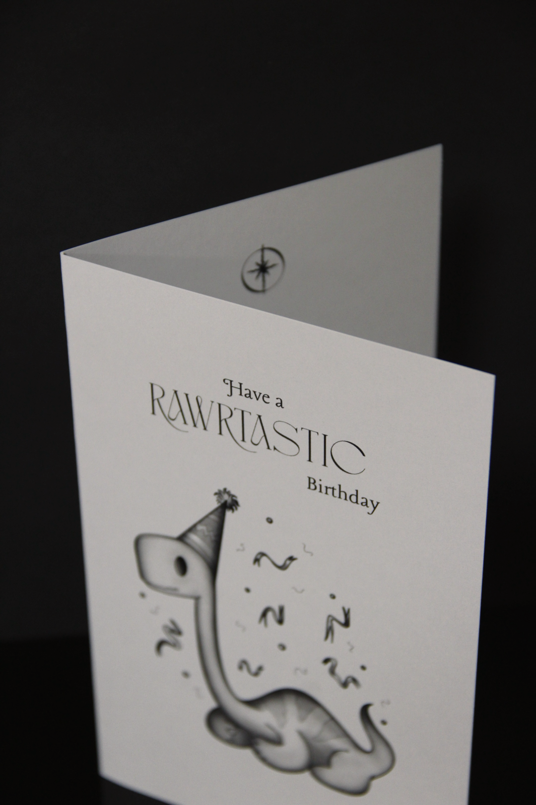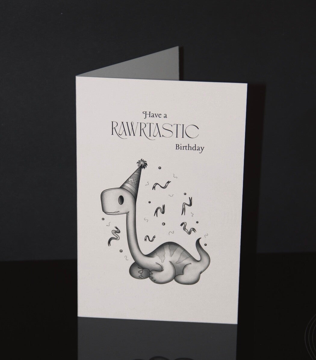 Birthday card dino 'have a rawrtastic birthday' with fold 11x18 cm